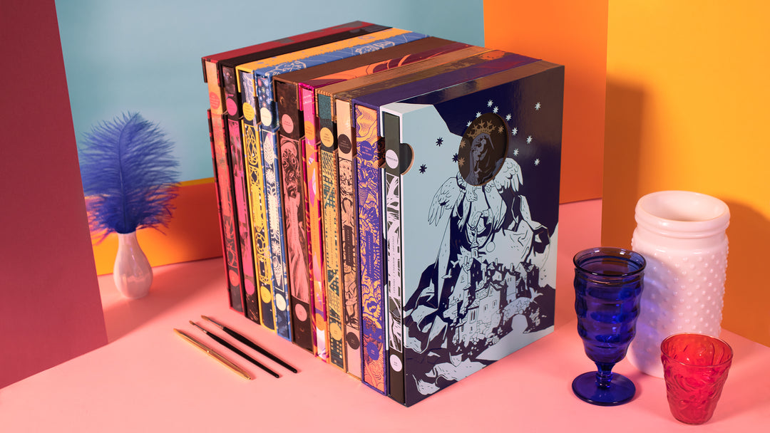 A limited edition cloth-wrapped slipcase volume, numbered in an edition of three hundred and signed by Mike Mignola and Lemony Snicket. Includes a foil-blocked print and an enamel pin. Also includes DRM-free digital editions of EVERY title in the Illuminated Editions line in perpetuity.