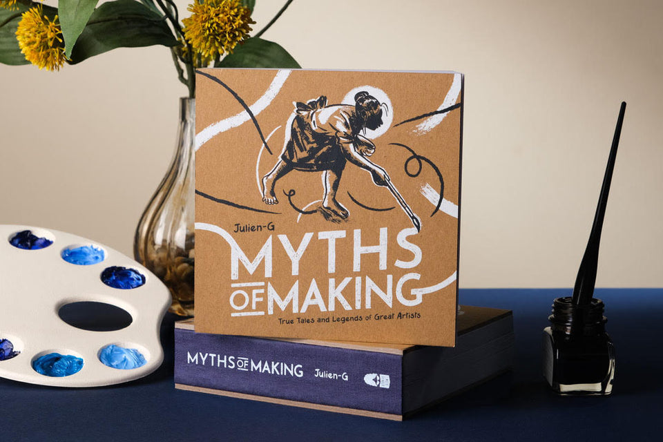 The READYMADE EDITION is a 6x6” hardcover composed of tactile foil-stamped exposed board covers and a woven buckram cloth spine, giving it a feel of both the raw materials of art-making and the polished lustre of fine art. Inside are 372 vividly illustrated pages printed on warm-toned acid-free heavy-weight 140 gsm uncoated paper.